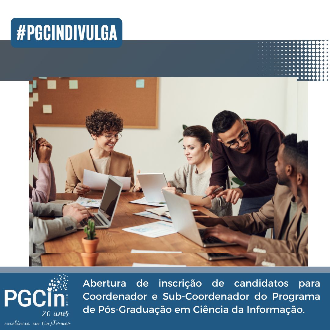 Mais informações em https://pgcin.ufsc.br/processos-seletivos/eleicoes-para-coordenacao-do-pgcin-ufsc/