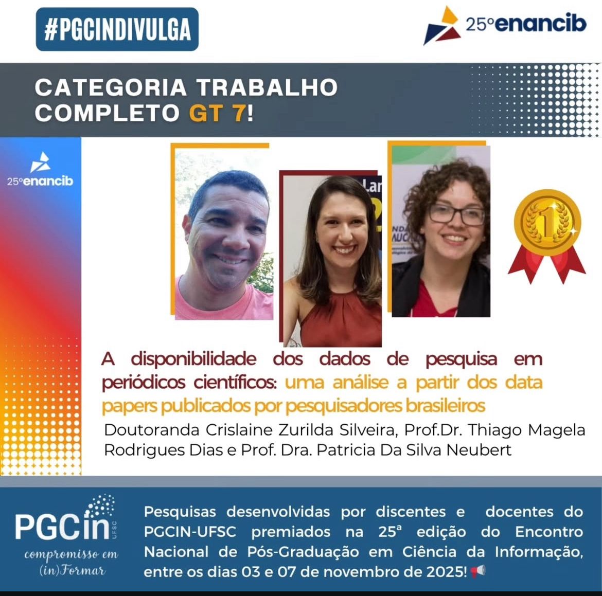 PGCIN teve três trabalhos premiados no 25º ENANCIB